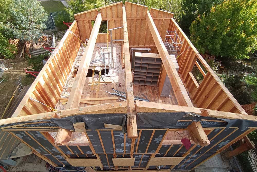 Création d'une Maison en ossature bois de 130 m² pour un particulier, isolation laine de bois, étanchéité a l'air et bardage